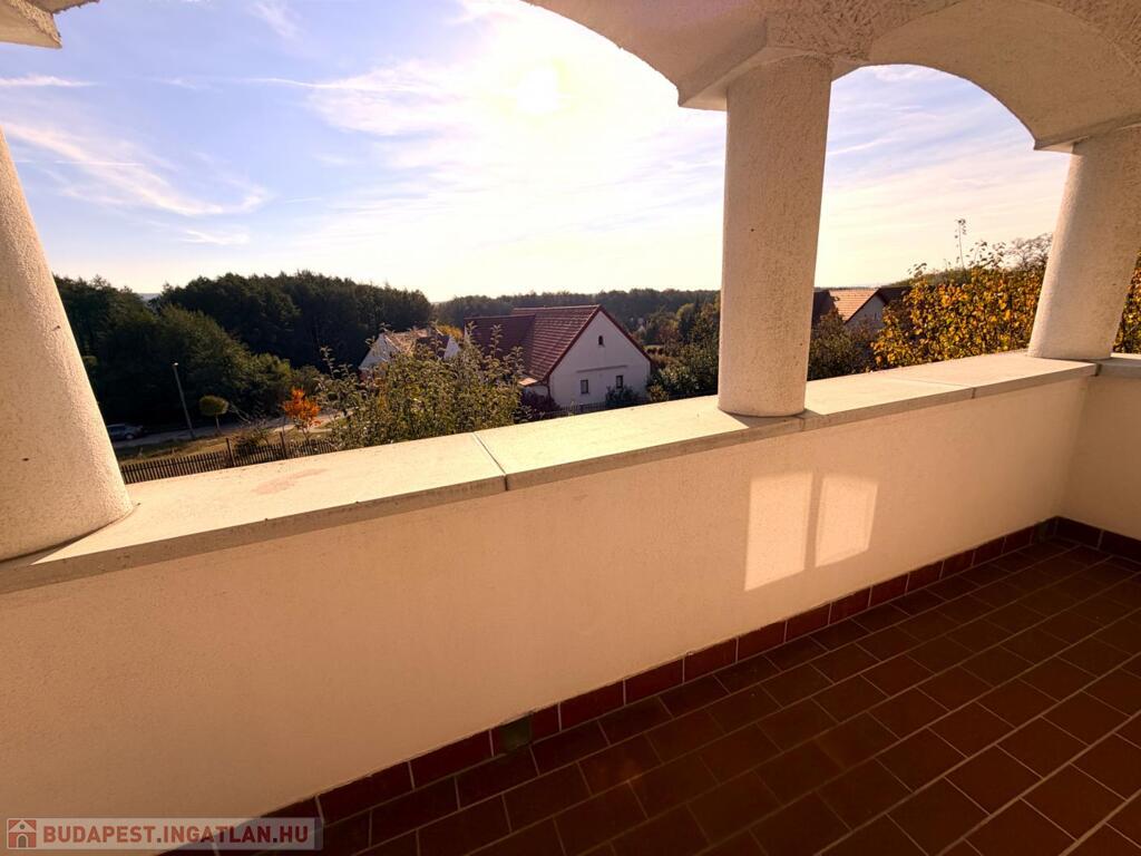 Földszint: amerikai konyhás nappali, 3 hálószoba (egyik saját zuhanyzós fürdővel), további fürdő WC-vel, vendég WC, előszoba, közlekedő, 15 m²-es fedett, panorámás terasz.