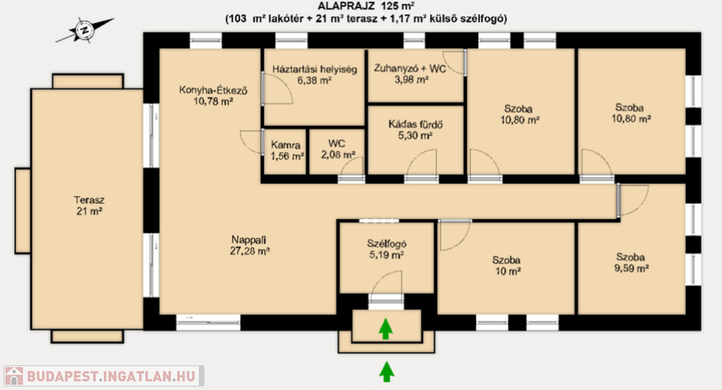 Terasz: 21 m², ÉNY-i tájolással, intim saroktelek.