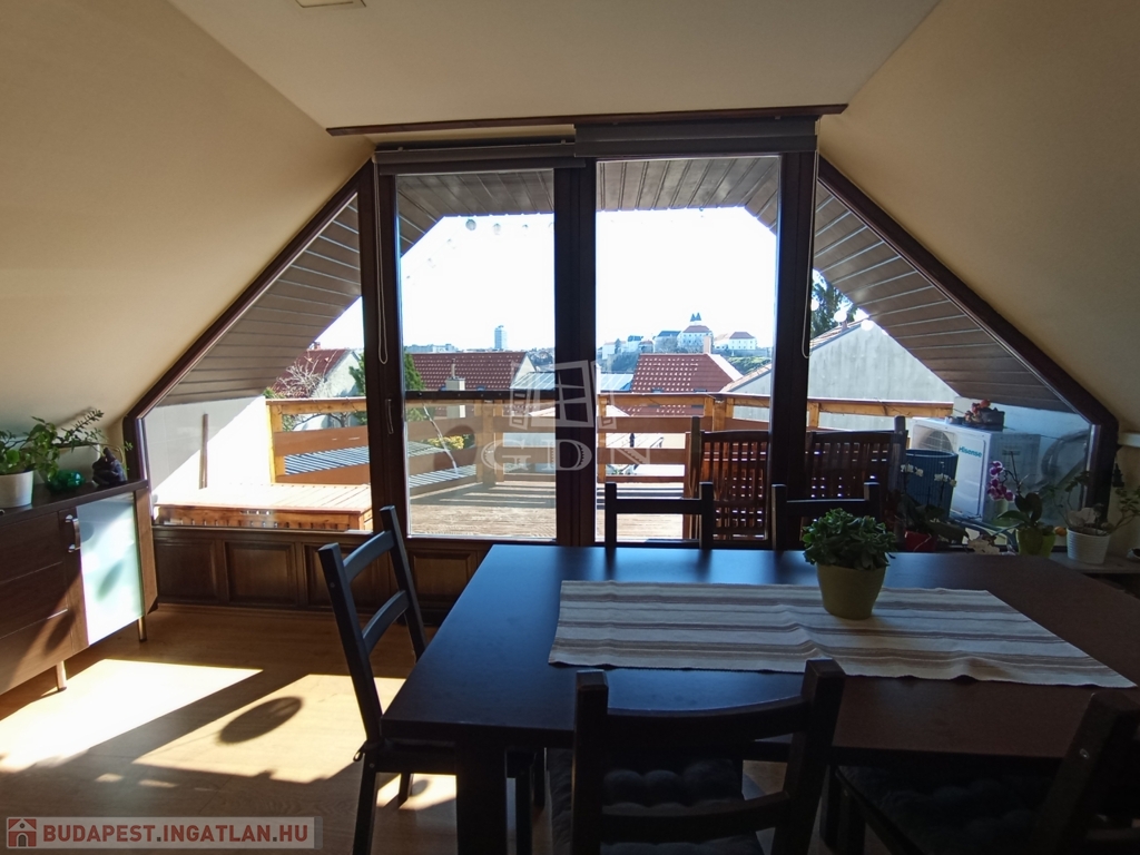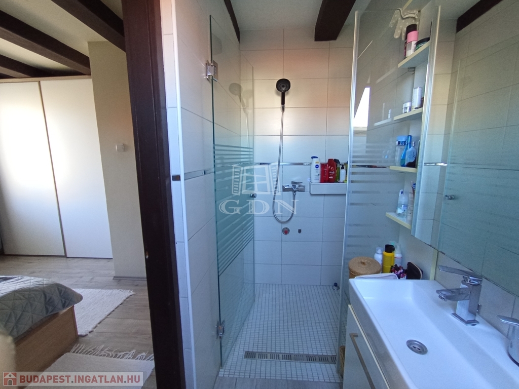 Felső szint: nappali, amerikai konyhás étkező, 3 hálószoba, 2 fürdő WC-vel (egyik zuhanyzós, közvetlen kapcsolattal a hálóhoz), erkély várpanorámával