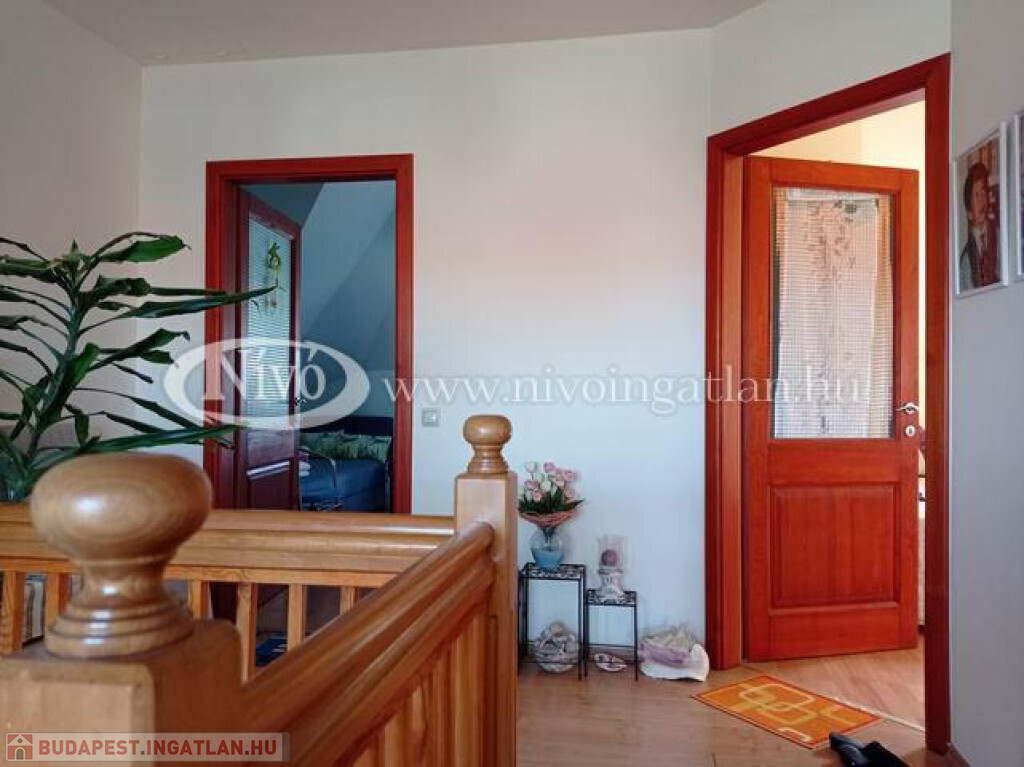 A földszinten található, egy nagy belmagassággal rendelkező előszoba, egy tágas, világos nappali-konyha-étkező, két hálószoba, egy zuhanyzós fürdőszoba amiben található egy száraz gőzfürdő is, egy külön WC illetve a -1 egy szintre való lejárat (üveglépcsővel). Az emeleten található két hálószoba, egy sarokkádas fürdőszoba WC-vel, bidével illetve egy zuhanyzós fürdőszoba WC-vel.