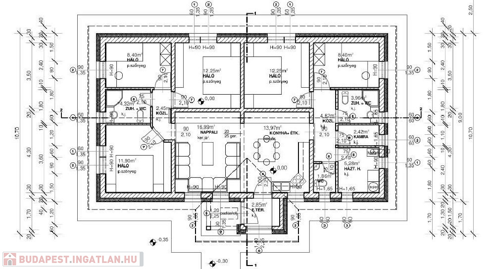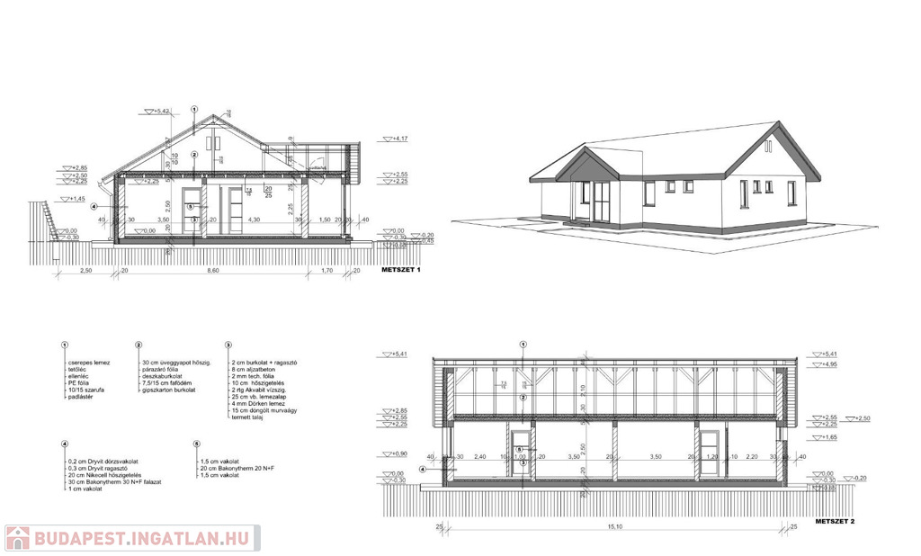 - szigetelés: 30cm mennyezetben, 20cm oldalfalon, 10 cm padlóban