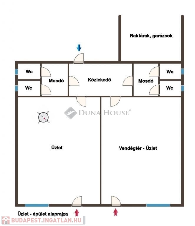 - Egy 100m2 méretű, vállalkozásra alkalmas épület, mely üzlet és vendéglátóhely besorolással is rendelkezik. Két nagyobb (40m2-es) utcai bejáratú üzlethelyiség található benne, illetve a hozzá kapcsolódó mosdók, vizesblokkok. Az épület jó állapotnak örvend, korábban tetejét felújították, külső homlokzata is rendezett.