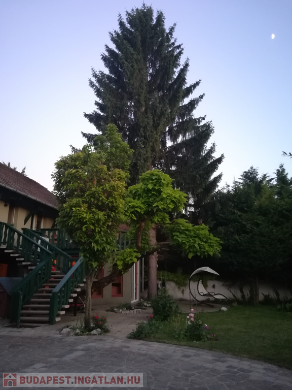 Egy nyugalmat árasztó, gyönyörű kertben lévő belső 2 szintes, külső és belső lépcsőn is megközelíthető, így 2 külön bejáratú, 2 független konyhás, 3 fürdőszobás lakásból a kertkapcsolatoshoz és az emeleti lakáshoz is óriási, intim terasz tartozik!