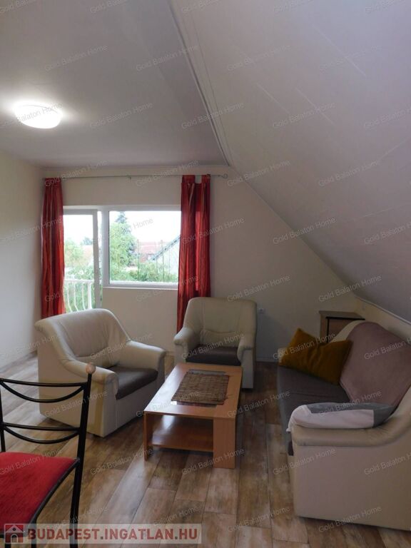 - tetőtér: lépcsőház, társalgó, nappali – konyha, balatoni panorámás erkély, 2 hálószoba, fürdőszoba káddal + fürdőszoba zuhanyzóval +WC