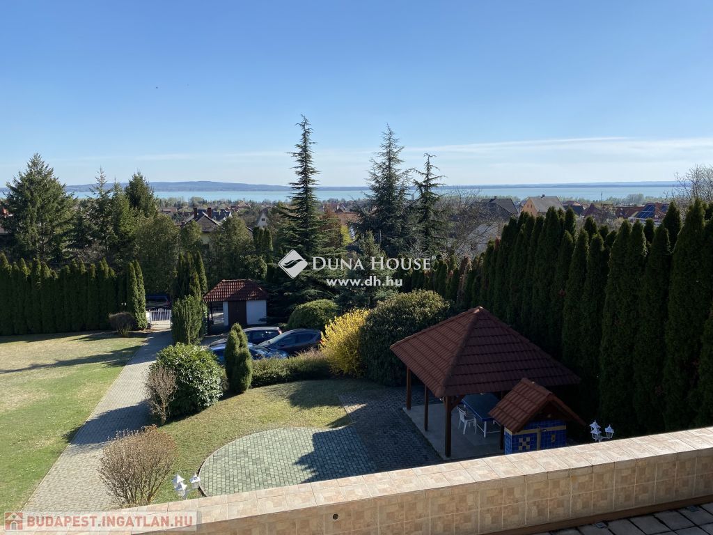 Nekem a Balaton a Riviéra... Vonyarcvashegyen a domboldalon, az erdő közelségében, gyönyörű panorámával, óriási nyitott és fedett teraszokkal ellátott családi ház eladó.Keszthely mellett, Hévíztől 10 km-re található, a vonyarcvashegyi és a gyenesdiási strand autóval 5 perc, a szupermarket 2 perc, INTERSPAR, TESCO 5 perc.A ház 2000-ben épült, az akkori technológiai és műszaki lehetőségek maximális kihasználásával és nagyvonalúságával.A háromszintes épület jelenleg is kiváló állapotban van, magán és/vagy idegenforgalmi hasznosításra, vállalati üdülőnek egyaránt hasznosítható.Az épületből némi átalakítással luxusingatlan alakítható ki vagy akár 2 vagy 3 különálló lakás (ingatlanfejlesztési lehetőség). Megépítésekor nagy gondot fordítottak az élhető terekre és nagyon jók a térkapcsolatok is. Az alsó szint a domboldalba ékelődik, remek közösségi élmények biztosítására alkalmas, jelenlegi tulajdonosai egy óriási, egylégterű nappali-konyhát, vizes blokkokat és egy fittnes-wellness részleget álmodtak meg ide.A két emeleti lakrész az épület mögött kialakított, zárt lépcsőházon keresztül közelíthető meg. Mindkét lakrész óriási nappalival rendelkezik, innen nyílnak a kényelmes méretű szobák (szintenként 3, illetve 4 szoba), illetve minden szinten külön fürdő, wc és konyha-étkező is helyet kapott. Mindkét szinten hatalmas, részben fedett terasz is kialakításra került, ahonnan remek panoráma nyílik a Balatonra. A lépcsőházon kívül a teraszok felől is megközelíthetők az alsó és felső szintek egyaránt.A hangulatos domboldalra telepített háromszintes villához egy nagyon szépen parkosított, közel 3800 m2-es telek is tartozik, melyen fedett grillterasz, 3 autónak térkövezett parkoló is kiépítésre került, emellett egy zárt garázs is rendelkezésre áll.A telek kiváló adottságainak és méretének köszönhetően rengeteg további fejlesztési lehetőségre van lehetőség (medence és egyéb kültéri építmények).Mindezek mellett az ingatlan egy a kíváncsi szemek elől remekül elrejtve, egy nagyon szép fasorral elkerített, nehezen megtalálható helyen fekszik, kellő intimitást biztosítva tulajdonosainak.Amennyiben felkeltette érdeklődését ez a csodálatos ingatlan keressen bizalommal ...!