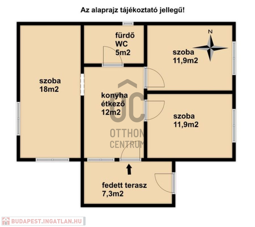 A lakótér 60m2-es, plusz egy 7,3m2-es déli tájolású terasz is tartozik hozzá.
