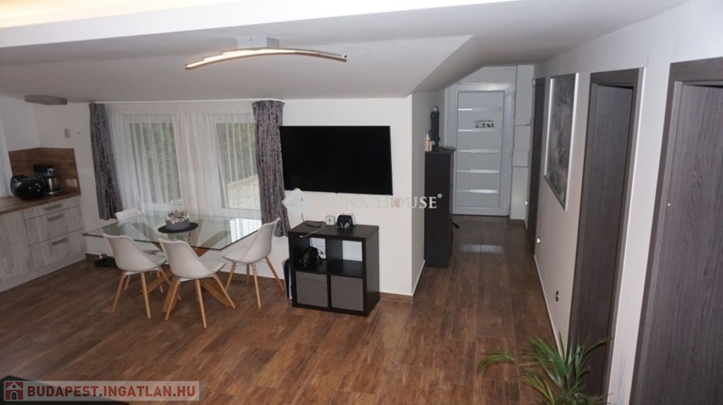 Alacsony rezsi költséggel üzemeltethető, ami köszönhető a szigetelésnek, (falakon 20 cm, födémen 35cm, az aljzatszigetelés pedig 15 cm-es vastagságban történt), és a korszerű 3 rétegű nyílászáróknak. Az épület egy gondozott 650 nm-es sík körbekerített telken található, ahol van még egy 27 nm-es könnyűszerkezetes szigetelt garázs, illetve egy 2 gépkocsi számára kialakított fedett beálló. Az udvar egy része térkövezett, illetve egy kb. 300 nm-es rész pedig gondozott füvesített terület. A ház intimitását az udvart körbe ölelő kb. 2 m magas zöldsövény biztosítja, aminek öntözése saját kútból történik. Remek választás lehet több gyermekes családnak akiknek fontos a belváros közelsége.
