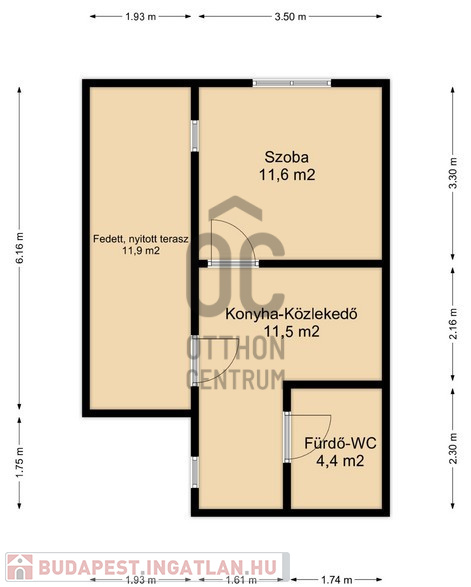 - Fedett terasza 11,9 m2 nagyságú.