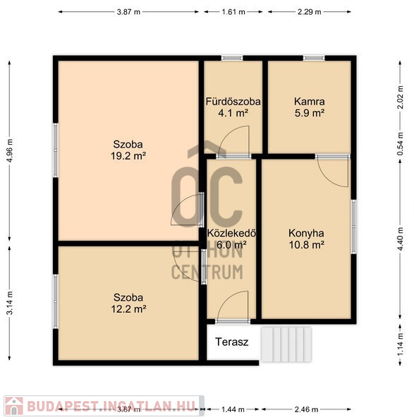 - Az építmény nettó 62,5 m2-es, a fedett terasszal együtt 66,5 m2.