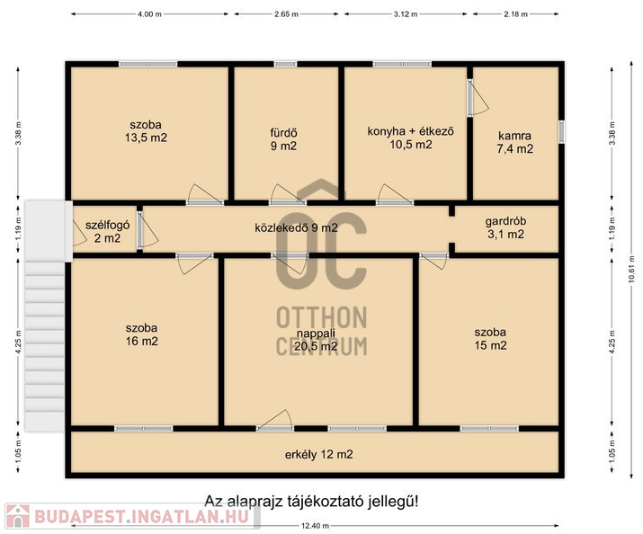 Az ingatlan elrendezése praktikus: 3 tágas hálószoba, nappali, konyha-étkező, fürdőszoba, gardrób és kamra biztosítja a kényelmes mindennapokat.