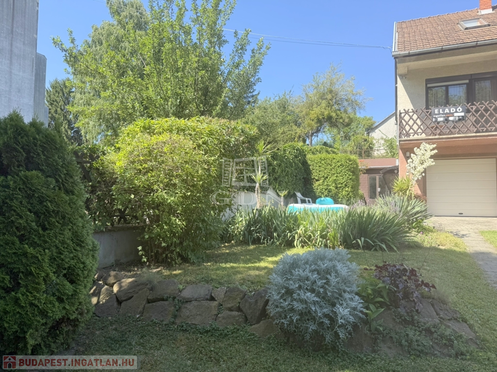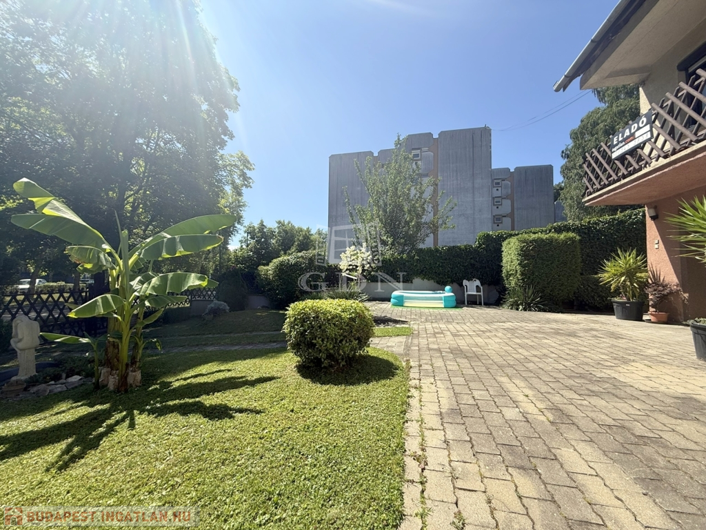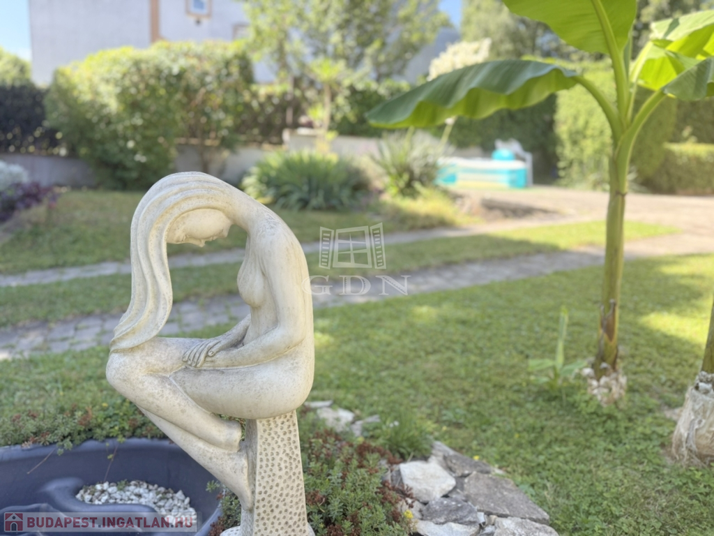 Mérete megfelelő kerti bútorok, játékok, medence ( betonozott rész készült hozzá ) kihelyezésére, azonban nem kell egész napokat fűnyírással tölteni.