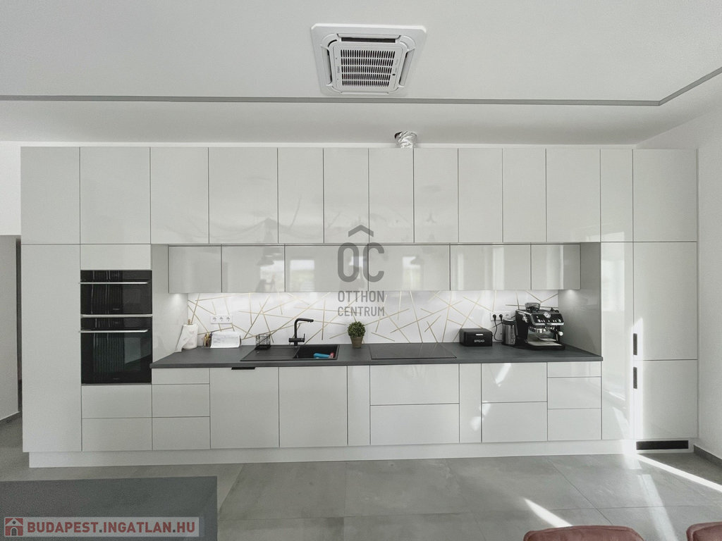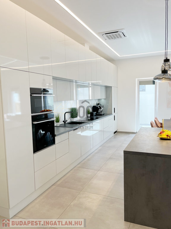 A konyhában beépített Whirlpool okos eszközökkel ( sütő, mikrohullámú sütő, indukciós főzőlap, páraelszívó, mosogatógép, hűtőszekrény és fagyasztó). Blancó mosogatócsap és szemetes. Valamint EVIDO ivóvíz tisztító rendszer, dupla karos csapteleppel.
