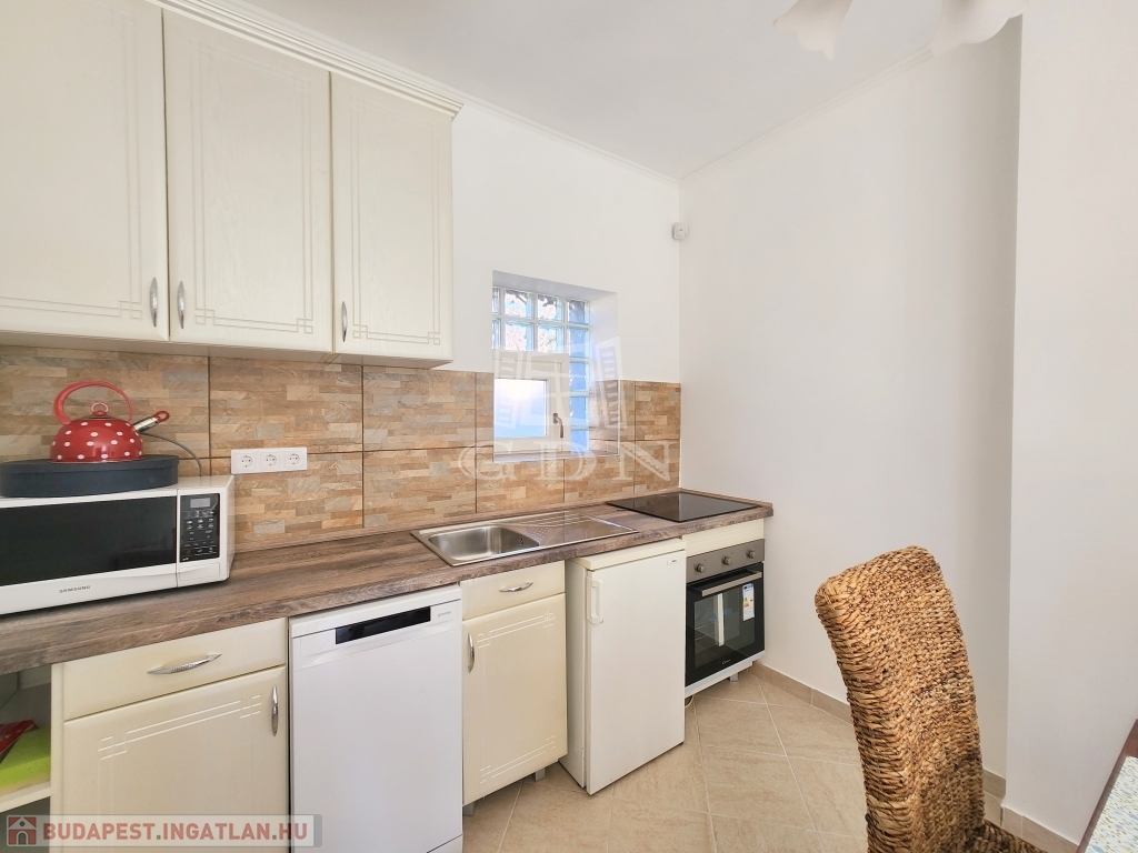 - A konyhába új mosogatógép, sütő és tűzhely került beépítésre, emellett a fürdő szaniterei, helyiségek burkolatai is magas kvalitásban újultak meg