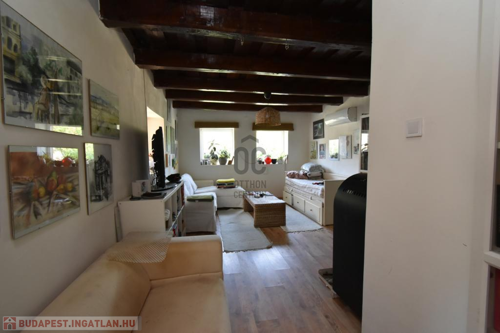 - A felújított parasztház igazi éke, a nappaliban található gerendás mennyezet.