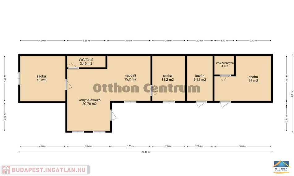 A ház fő része egy amerikai konyhás étkezőből, nappaliból, fürdőszobából és két ideális méretű hálószobából áll, míg az udvar felől nyílik egy másik, önálló szoba, saját fürdőszobával.