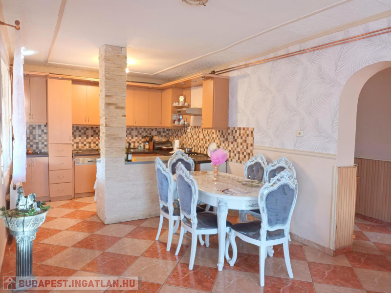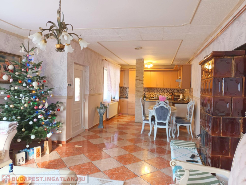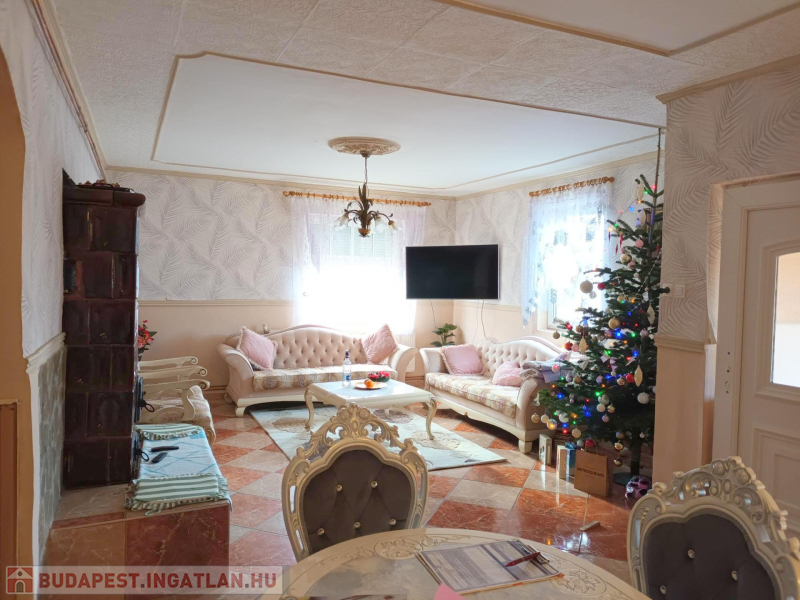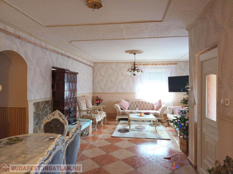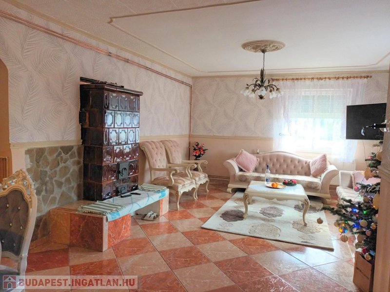 A 145 nm-es épületben 4 szoba, 1 tágas nappali, szintenként fürdőszoba, a földszinten külön Wc, 1 konyha-étkező, 1 közlekedő és 1 lépcsőház található. A nyílászárók nagy része műanyagra lett cserélve, redőnnyel felszereltek. A nappali, konyha-étkező új járólap burkolatot kapott, a földszinten a két szoba és a tetőtérben lévő egyik szoba laminált padlóval lett ellátva. A földszinten lévő fürdőszoba a 2023-as évben lett felújítva.