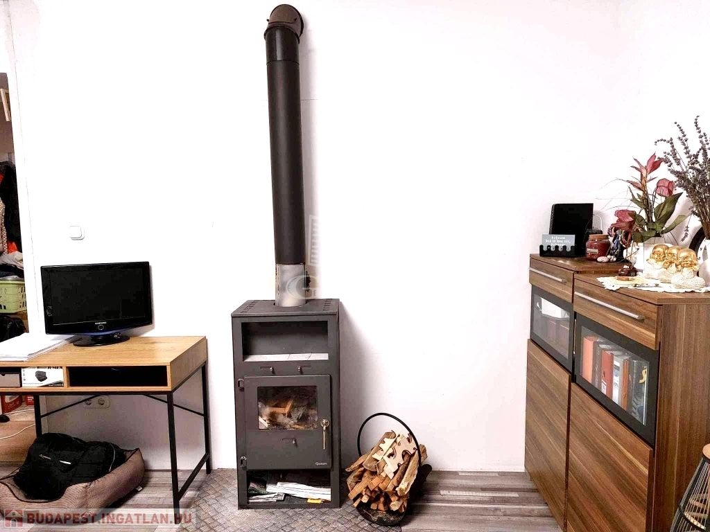 A ház melegéről fa tüzelésű kandalló, illetve elektromos melegítő gondoskodik, a melegvizet villanybojler szolgáltatja. A gáz a házba nincs bekötve, de a telken belül megtalálható a csatlakozás, így igény esetén könnyedén megoldható a rákötés. A többi közmű (villamos áram, víz, csatorna) a házban bekötve. Az épületre napelem panelek is felszerelésre kerültek, így a villamos energia költségek jelentősen csökkenthetők.