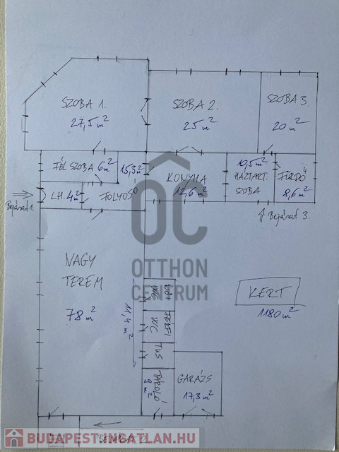 -Az 1180 m2-es telken álló, bruttó 260 m2-es tégla építésű ház felújítandó állapotú.