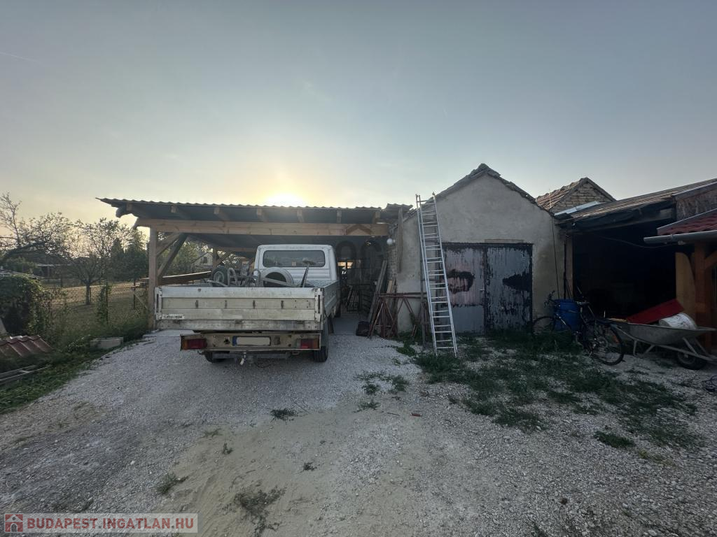 Az épület mellett található egy garázs, egy fedett beálló, amely 2 gépkocsi számára biztosít helyet.