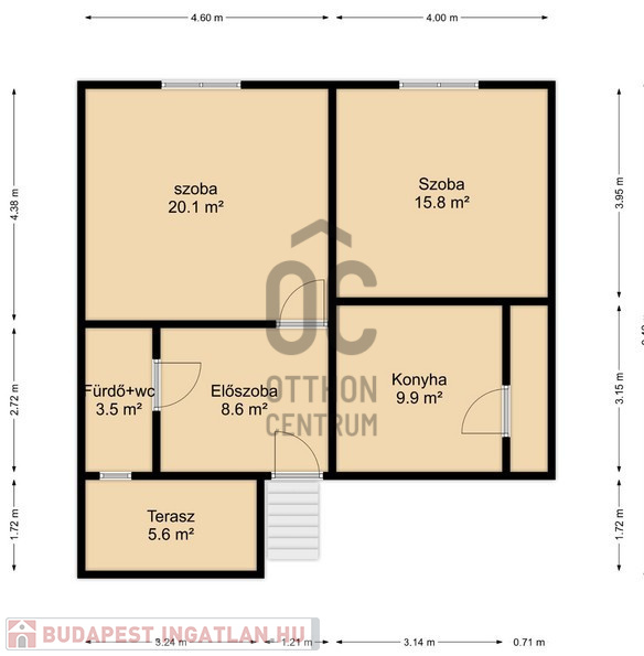 - Az építmény nettó 66 m2-es, a terasszal együtt 72 m2, mely felújításra szorul.