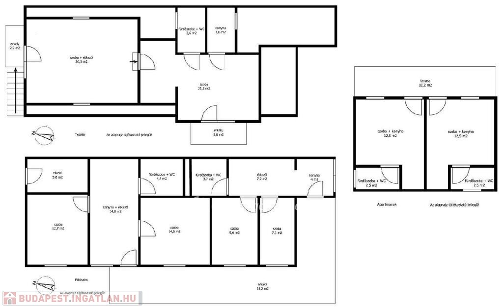 Balaton déli part, Zamárdi, vízpart közeli 193 m2 családi ház és apartman, 530 m2 telek eladó. Az ingatlan a közkedvelt település üdülőövezetében helyezkedik el, 300 méterre, gyalog 4 percre a Balaton-parttól, szabadstrandtól. Az évek óta jól működő apartmanház működtetése már erre a szezonra is átvehető, de kisebb átalakítással tökéletes családi házzá alakítható állandó lakhatásra vagy nyaralásra. Jelenlegi állapotában az egy, illetve kétszobás apartmanok összesen 20 fő befogadására alkalmasak. Az összesen 169 m2 lakóteret 49 m2 terasz és erkély növeli. Az áramellátást napelem biztosítja, így a havi rezsiköltség csak 8 ezer Ft. Az egyes lakrészek különböző komfortfokozattal rendelkeznek, van köztük gázkonvektorral fűtött és klimatizált is. A zárt, térköves udvaron 5 autó elhelyezésére van lehetőség, a füves udvarrész pedig tökéletes hely a pihenésre, családi és baráti összejövetelekre, a gyerekeknek játszótérre. Az ingatlan azonnal használatba vehető, nagycsaládoknak, több generációs családoknak, baráti társaságoknak, vagy befektetési céllal részben vagy egészben kiadásra, nyaraltatásra, üzleti vállalkozásra is kiválóan alkalmas. A szabadstrand mellett kikötő, éttermek, bolt, fagyizó, vasútállomás párszáz méteren belül elérhető, állandó lakhatáshoz pedig óvoda és iskola is biztosított. Ritka, egyedi lehetőség sokféle elképzelés, terv megvalósítására. Bővebb információért keressen telefonon! M326765