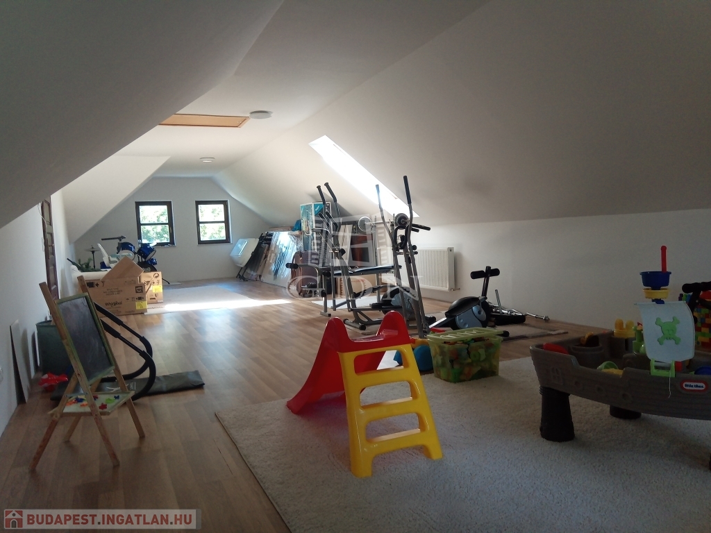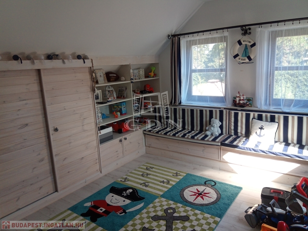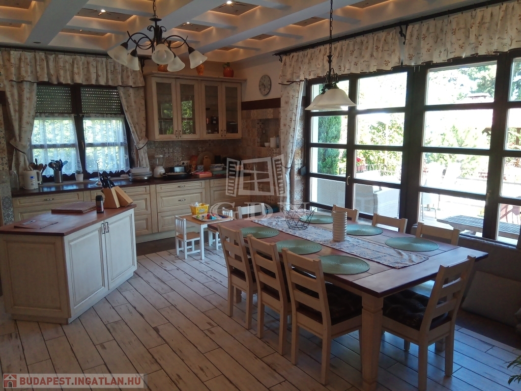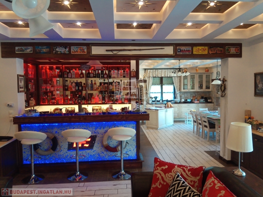Zamárdi keresett részén, a víztől ötszáz méterre, kényelmesen megközelíthető helyen eladó ez a luxus, számos célra hasznosítható, jelenleg LAKÓHÁZ minősítésű ingatlan. A ház 2017-ben épült minőségi anyagok felhasználásával. Egy gyönyörű parkosított kert öleli, amelyben kerti beálló, pihenő, fedett grillező, egy hatalmas műfüves sportpálya, kis játszótér és egy úszómedence is található. Itt kapott még helyet egy 24 nm területű kerti tároló is, amely akár plusz nyaralóként is funkcionálhat. A ház vízellátását a vezetékes vizen kívül két kút is segíti. A ház kiválóan alkalmas mind állandó lakásra mind üzleti célra. A földszinten egy belépőből nyílik a hatalmas mosókonyhával és beépített bútorzattal ellátott nagy területű garázs. A belépő-közlekedő helyiségből juthatunk fel a ház emeletére, de innen nyílik a tágas és kertkapcsolatos nappali is amelyben helyet kapott egy hangulatos bár is. Ugyancsak a nappaliból nyílik egy kertkapcsolatos hálószoba saját kádas-zuhanyzós fürdővel és vécével, valamint innen nyílik két gardrobe is, továbbá innen juthatunk még egy plusz ugyancsak kertkapcsolatos helyiségbe, amelyben egy télen is használható jacuzzi várja a pihenni vágyókat. A nappali mellett kapott helyet egy tágas konyha étkezővel. Ez is közvetlen kertkapcsolattal bír. A földszinten található még három külön hálószoba saját tusolós fürdővel vécével. A ház emeletén található hat hálószoba, ebből 4 egymásba is nyitható. Itt két hálónak saját fürdőszobája van és van még két külön tusolós fürdő is wc-vel. Itt került kialakításra egy óriási egy légterű hobbi szoba is, amely akár további hálószobákká alakítható. Az épület teljesen légkondicionált. Fűtése alapvetően gázkazánról történik, de lehetőség van a klímákkal vagy kandallóval való fűtésre is. A használati melegvíz ellátást gáz és villany is biztosítja. Az ingatlan beépített bútorzattal (igény szerint teljes bútorzattal) eladó.