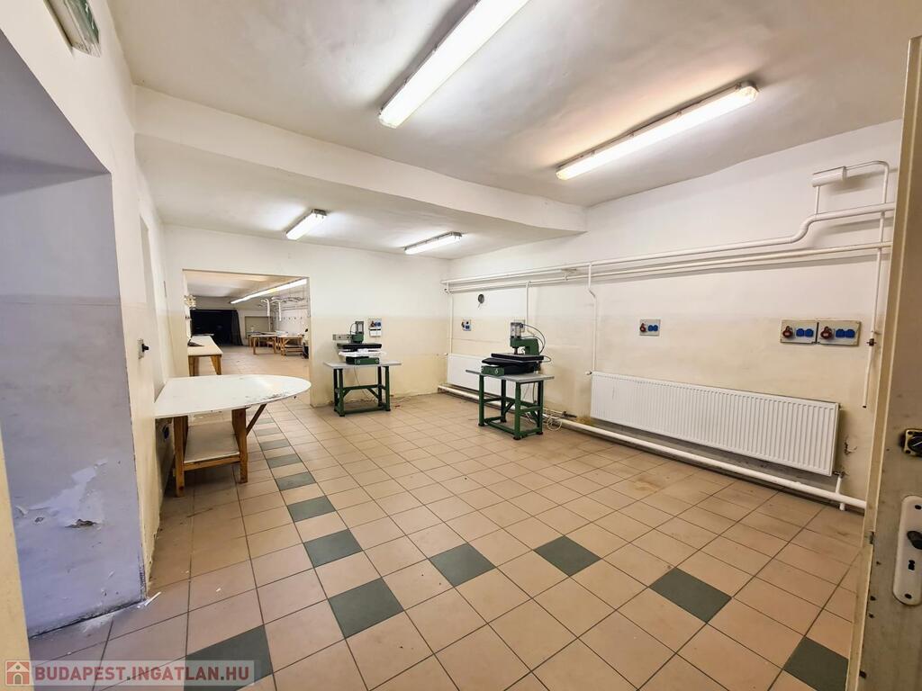 - előtér, közlekedő, üzlethelyiség, 3 műhely, raktár, tároló, öltözők, fürdők, WC-k, kazánház, pince (45 nm)