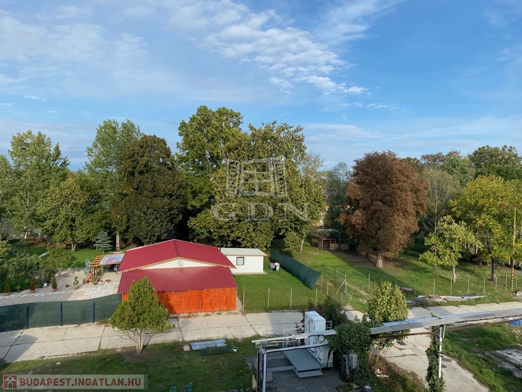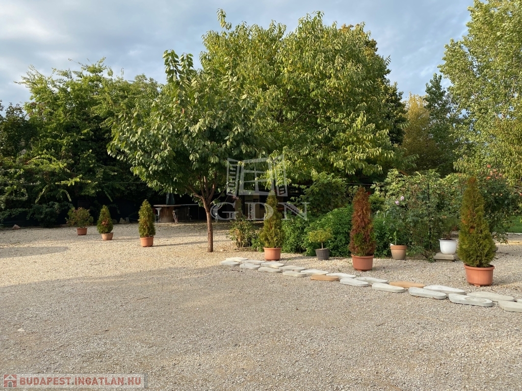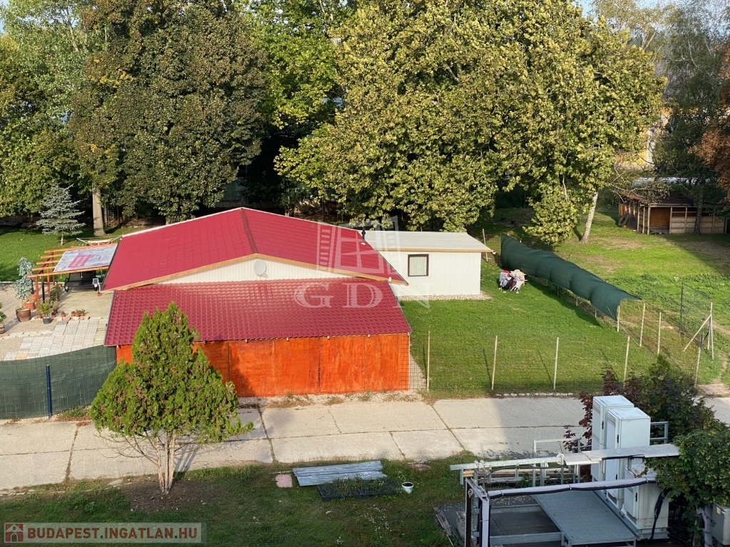 A telken jelenleg egy 210 nm nagyságú acélszerkezetes épület található, melyben 2 lakás és egy garázs kapott helyet.