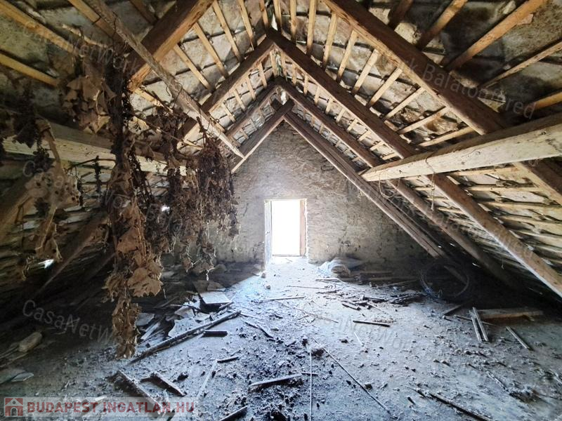 - a közel 100 éves, kettő helyiségből álló épület villannyal ellátott (víz az ingatlan közelében) és felújításra szorul, de jó statikai állapotban van,