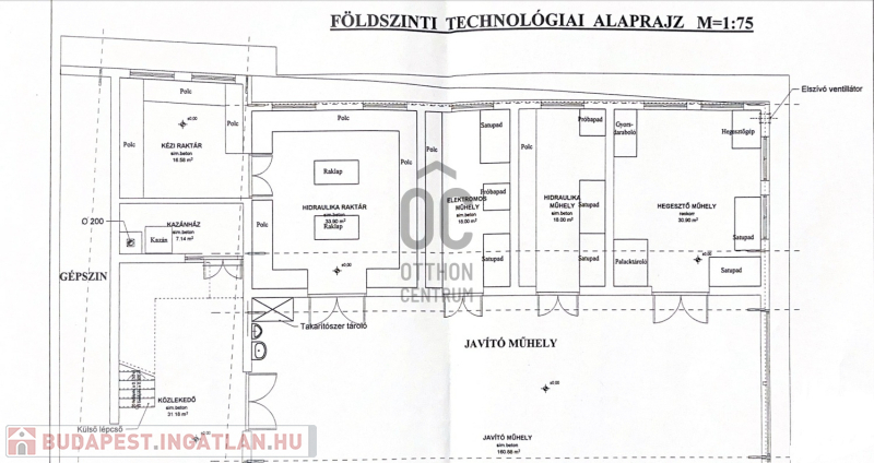 - Csarnok: gázos plafonfűtés