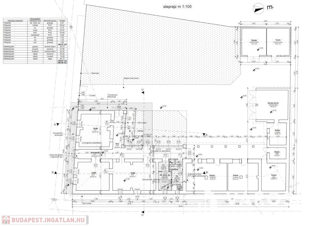 Az ingatlanhoz tartozó, 993 m2 nagyságú telken 2 épület található, melyből az egyik az iroda- (főépület) és raktárként (toldaléképület), a másik garázsként hasznosított.