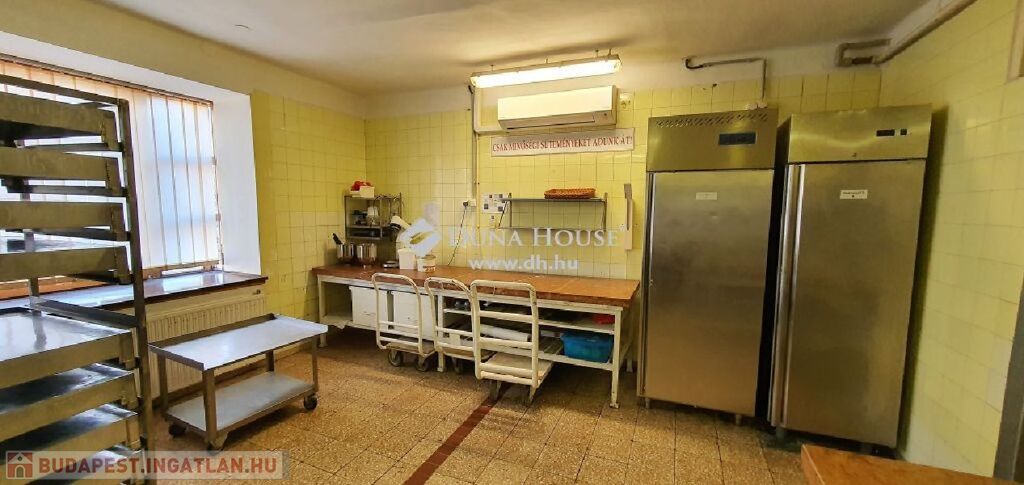 Békéscsaba belvárosában eladó a MESE Cukrászda a hozzátartozó üzemmel, lakással, melléképületekkel!A kiváló műszaki állapotban lévő, klinkertégla homlokzatú épület több, különböző funkciójú egységből áll. A közkedvelt cukrászda üzlettere és kiszolgáló helyiségei felett a cukrászüzem, míg a földszinten egy nappali + három hálószobás borospincével, edzőteremmel felszerelt lakás található. A zárt udvarról megközelíthető melléképületben több garázs, nyári konyha és tároló helyiség található. Az épületek nettó összterülete közel 1.000 nm.A főépület statikailag elvileg további szinttel bővíthető, továbbá érvényes építési engedély van három, utcára nyíló garázs kialakítására az egyik meglévő melléképületben.Az ingatlan fő paraméterei:- 1952-ben épült, kisméretű tömör téglából. A fő falak 80-90 cm vastagságúak.- Az 1238 nm-es sarki telek Vt-2 övezeti besorolásban van. Zárt sorú beépítési mód, 80%os beépíthetőség, 14 méteres építménymagasság alakítható ki.- A szokásos közművesítés mellett ipari áram, ipari gáz és zsírfogó akna is van.- Az emeleti üzemhez teherlift segíti az anyagmozgatást.
