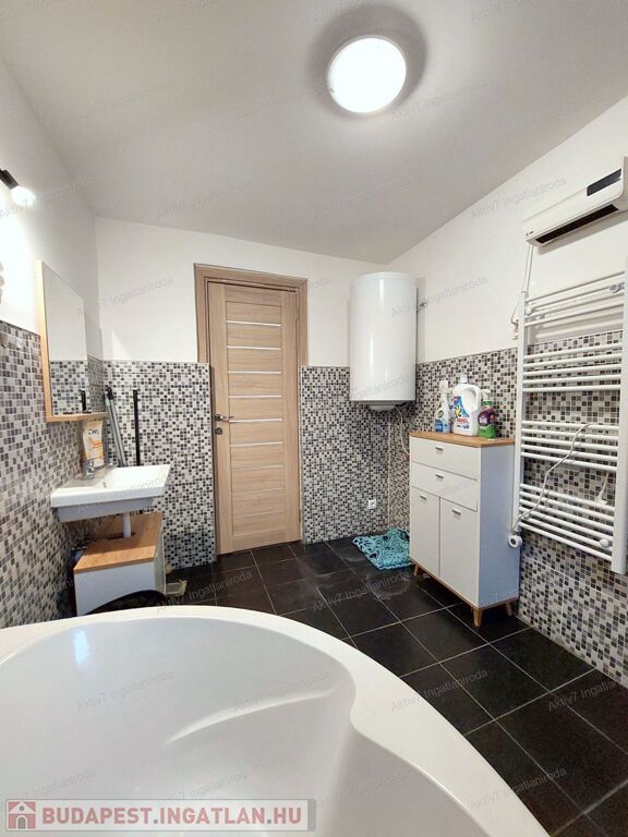 - Fűtés és melegvíz: a fűtés klímaberendezéssel megoldott, a melegvíz-ellátás villanybojlerrel történik.
