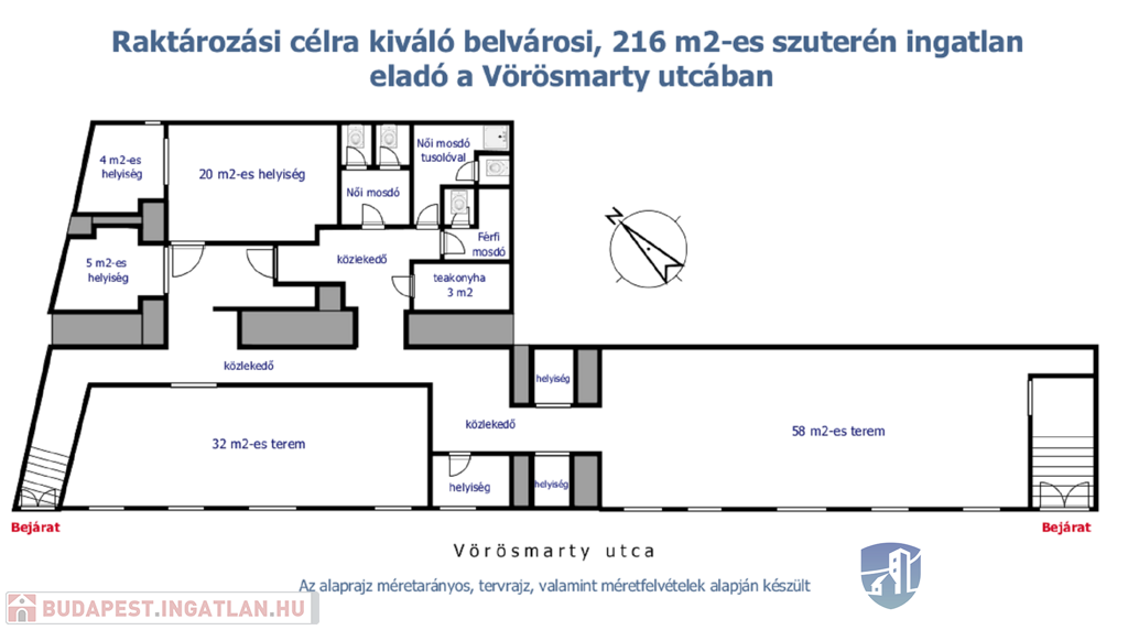 In the 7th district of Budapest, 400 M FROM ERZSÉBET KÖRÚT, on Vörösmarty Street, a renovated, bright, windowed, basement property of 216 m2 with TWO STREET ENTRANCES is for sale.