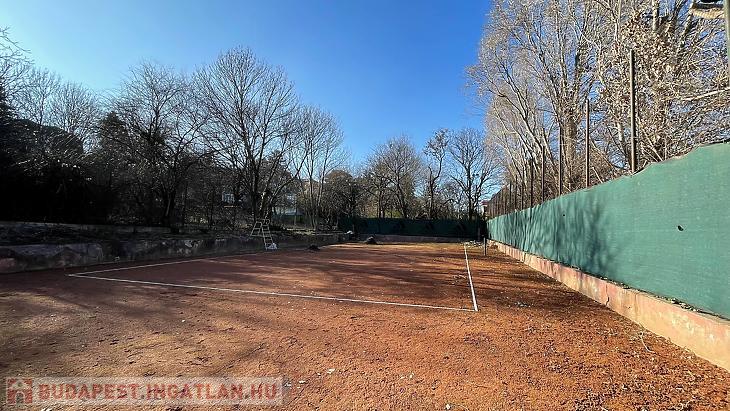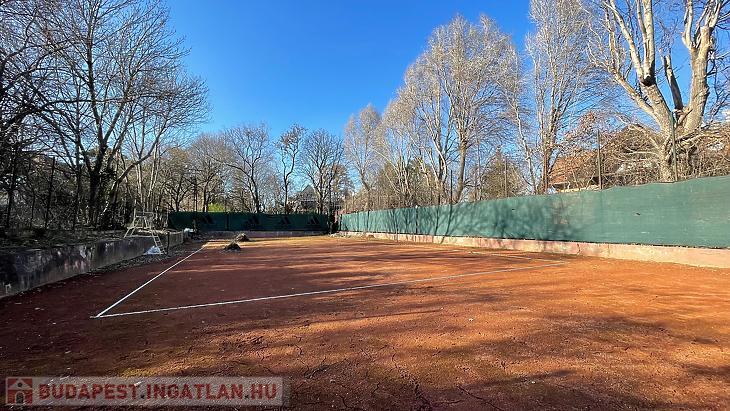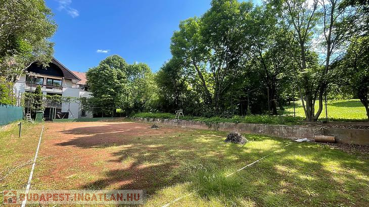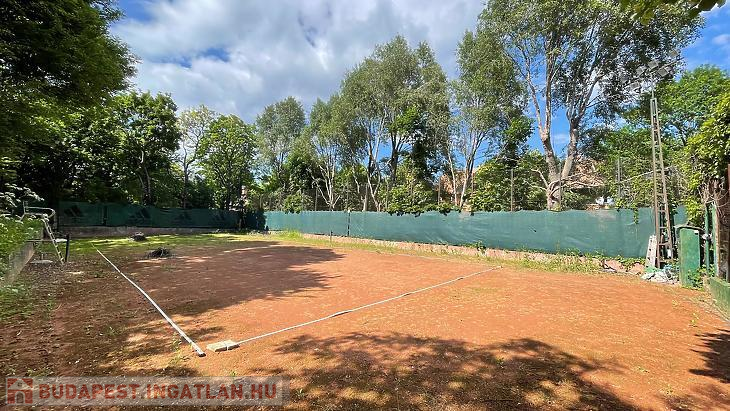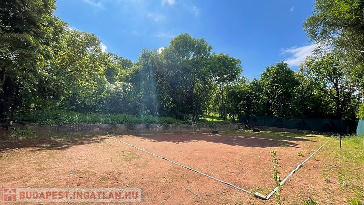 Kútvölgyben, zöldövezeti környezetben, körbekerített teniszpálya eladó kocsibeállóval.