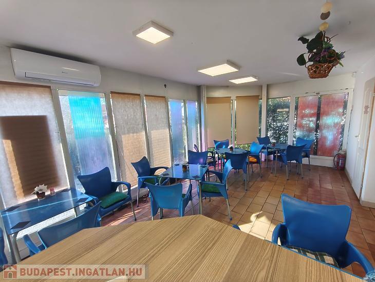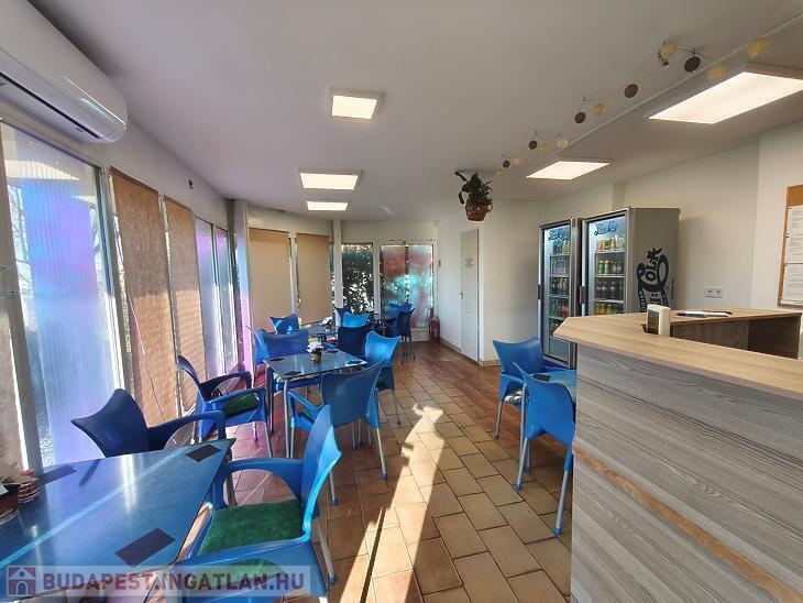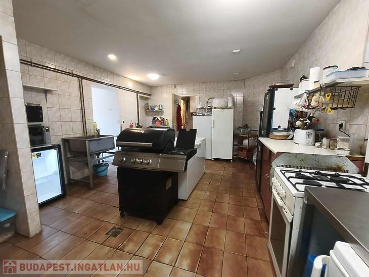 vendég tér, 4 tároló helyiség, konyha, vendég mosdó, személyzeti zuhanyzó + mellékhelyiség.