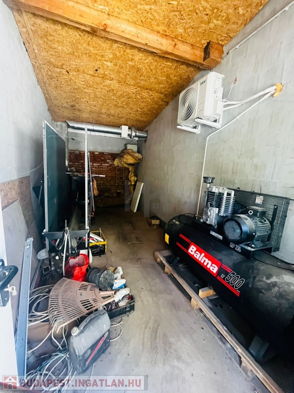 - a műhely részen a tető 6 éves (lemez), 2 éve lett vakolva, teljesen átvezetékelve, 3x32C típusú kismegszakítók (ipari áram), vegyes tüzelésű központi fűtés és klíma is található