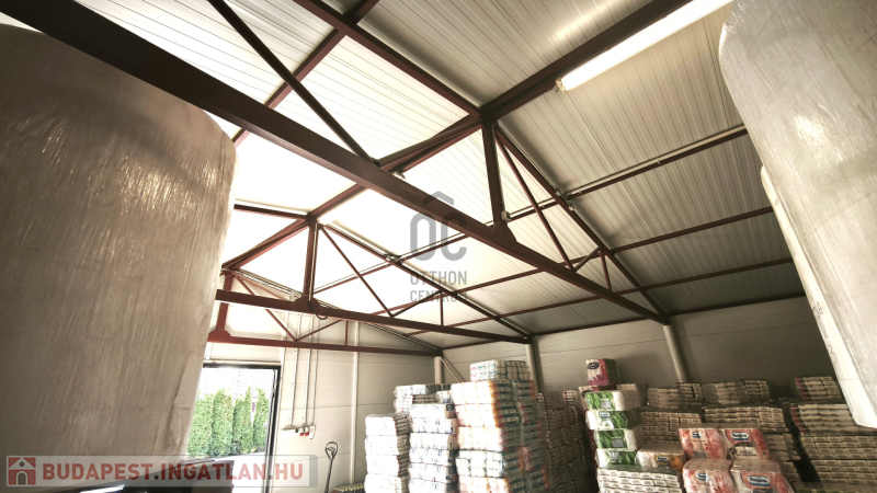 - egy gyártó csarnok, amely kb : 300 m2, könnyűszerkezetes panelból épült, ebben található : egy iroda, papírzsebkendő gyártó egység 2 db egyedi gépsorral, minden felszereléssel, gépekkel, eszközökkel , a gyártáshoz szükséges alapanyagok tárolására alkalmas terület, kamerával, riasztóval ellátva