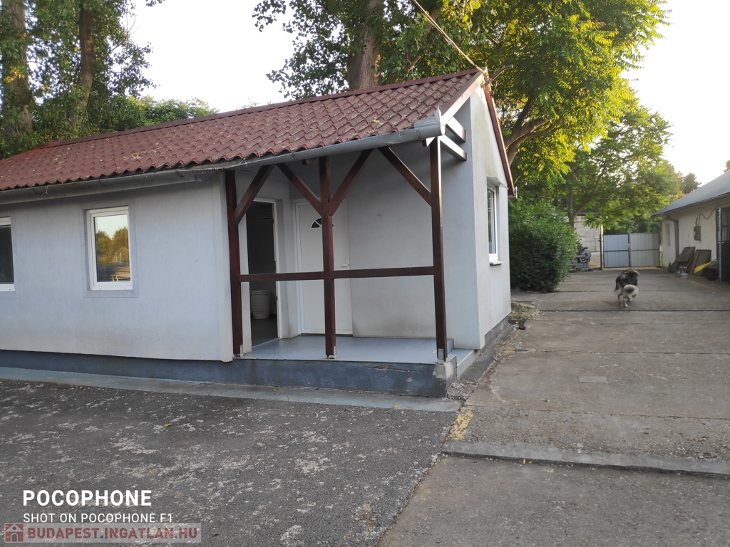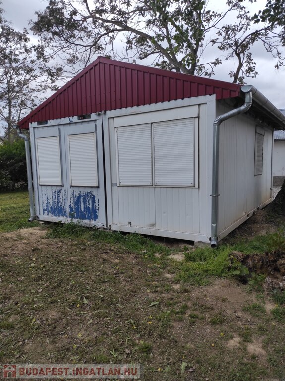 Az iroda épülete kiváló állapotban van: 20 éve épült , cserepeslemez tetővel, könnyűszerkezetes, 37 m2 alapterületű, műanyag nyílászárók reluxával , szürkéskék járólappal ellátva.