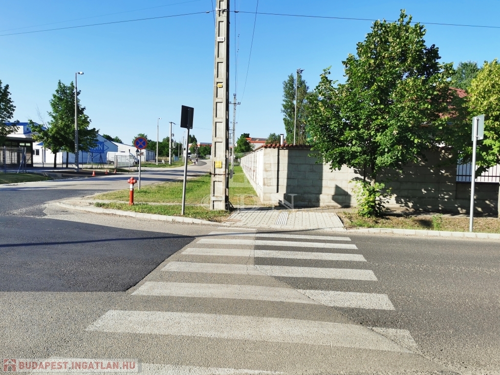 Saroktelek / majdnem szabályos téglalap alakú / utcafrontjai: cca. 76 m és 60 m / görgős nagykapu mindkét utcafront telekhatár részénél / ipari áram, ipari gáz