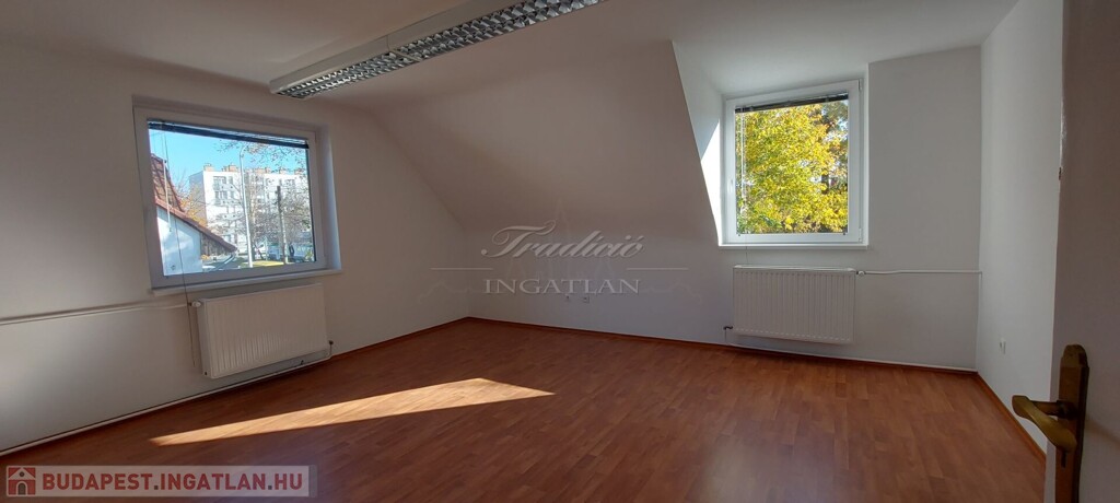 Az ingatlan jelenleg irodaházként működik, de nagyobb család részére is kitűnő életteret nyújt. A telek nagy része térkővel burkolt, ahol 6 autó parkolására van lehetőség. A garázs egy raktárhoz/üzlethelyiséghez kapcsolódik, melynek tetőtere is beépített.