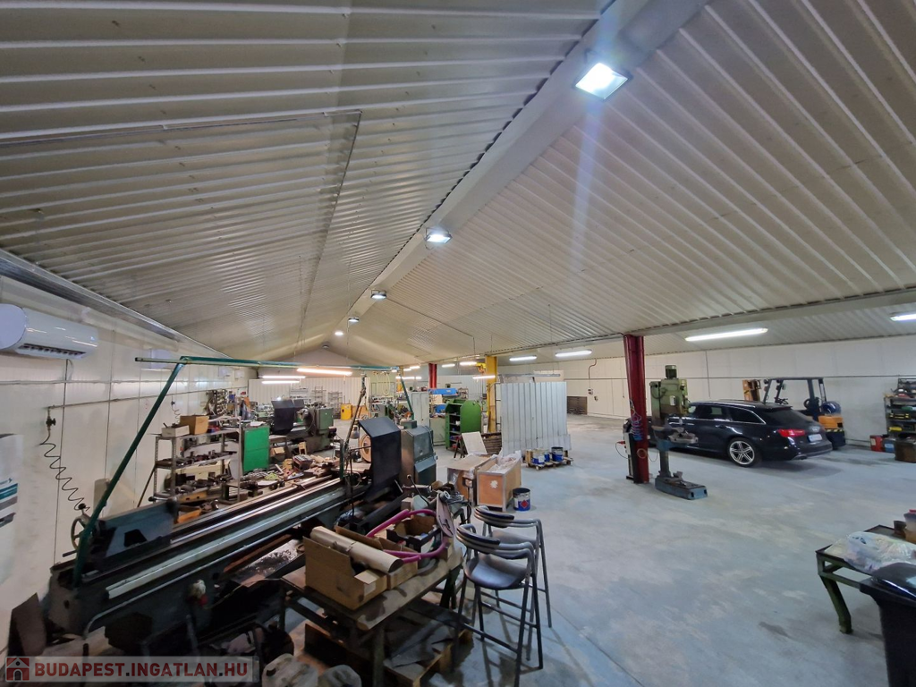 Az üzemcsarnokban pillanatnyilag is üzemel egy esztergályos- forgácsoló gépműhely, tehát alkalmas bármilyen könnyű és nehézipari tevékenységre. A parkolás a műhely előtti szomszédokkal közös zárt udvarban megoldható.