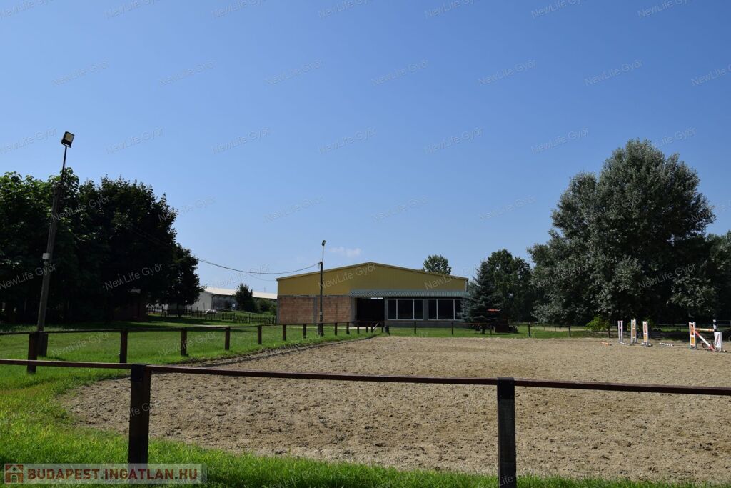Győr-Moson-Sopron vármegye Gyirmót, eladó külterületi, ipari-kereskedelmi övezetben többcélú hasznosításra alkalmas telephely, fedeles lovarda, legelők