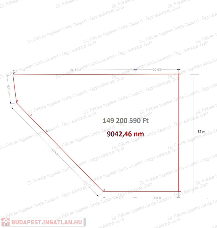 Eladó a győrújbaráti ipari park szomszédságában ez a 9042,46 nm-es GKSZ besorolású, kereskedelmi, szolgáltató terület.