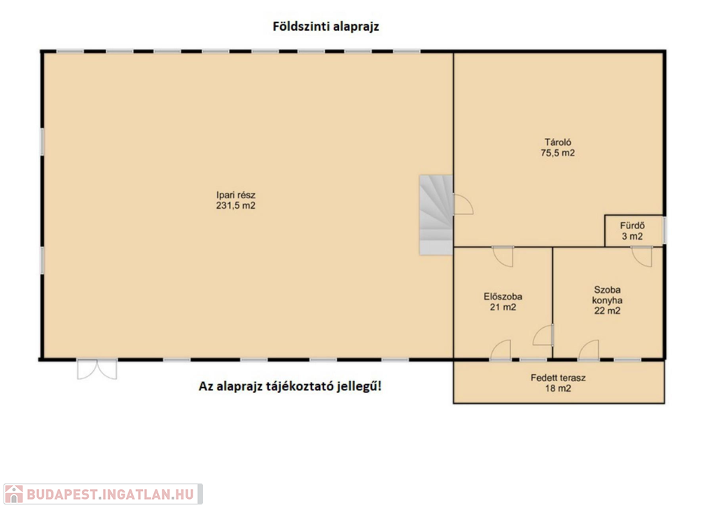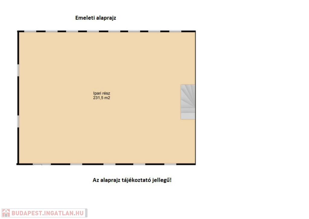 Az épület hasznos területe 816m2, melyből a garzon 24m2. A körbekerített terület 2874m2, ahová két nagykapun lehet bejutni. Az udvaron található továbbá, egy jó állapotú melléképület, mely korábban mázsaházként funkcionált.