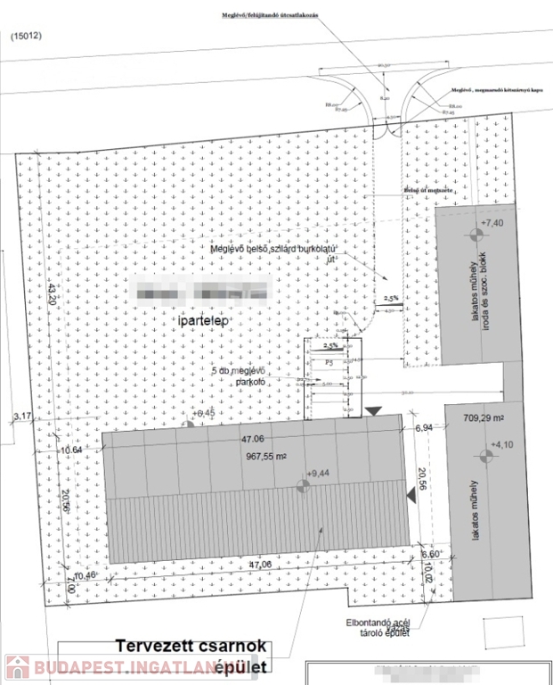 A területre építhető még egy tervekkel és engedélyekkel rendelkező 956 nm hasznos alapterületű csarnok. Az építéshez szükséges acélszerkezet váza a területen található, alapozás után felállítható.