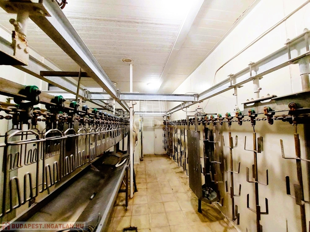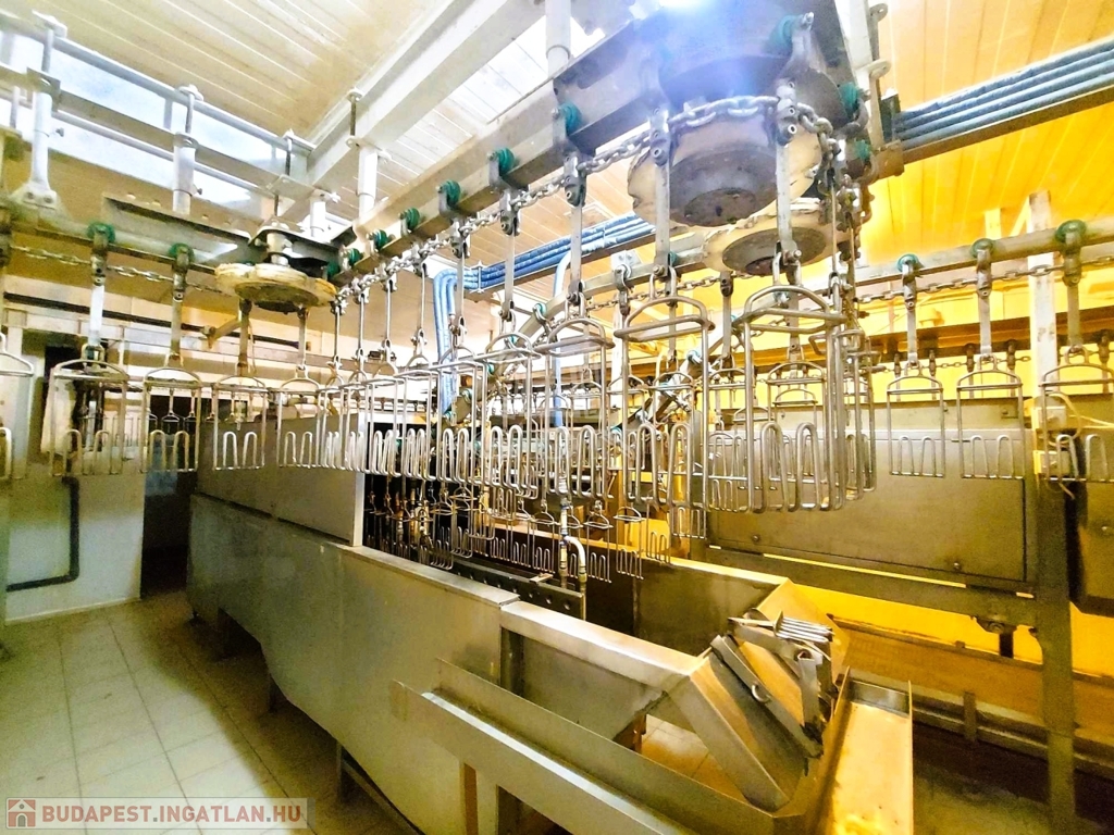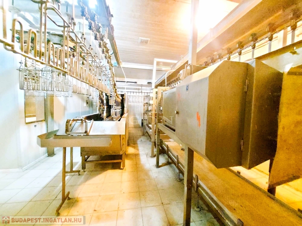 A hőálló 20cm szendvicspanel szerkezetű ingatlan három méteres melmagasággal ,3x120A áramellátással rendelkezik akár 8000 db/nap vágási kapacitással. A fűtésről- melegvizellátásról 2 x 45KW-os gázkazán a vizellátást 80m-es fúrt kút biztosítja, a biztonságról kamerarendszer valamint állandó 24órás portaszolgálat gondoskodik a telephelyen. Lehetőség van az ingatlant az üzemeltető céggel- beszállítói körrel együtt is megvenni, a telek nagysága lehetővé teszi az épületek bővítését, egyéb tevékenység vállalkozás megvalósítására is.