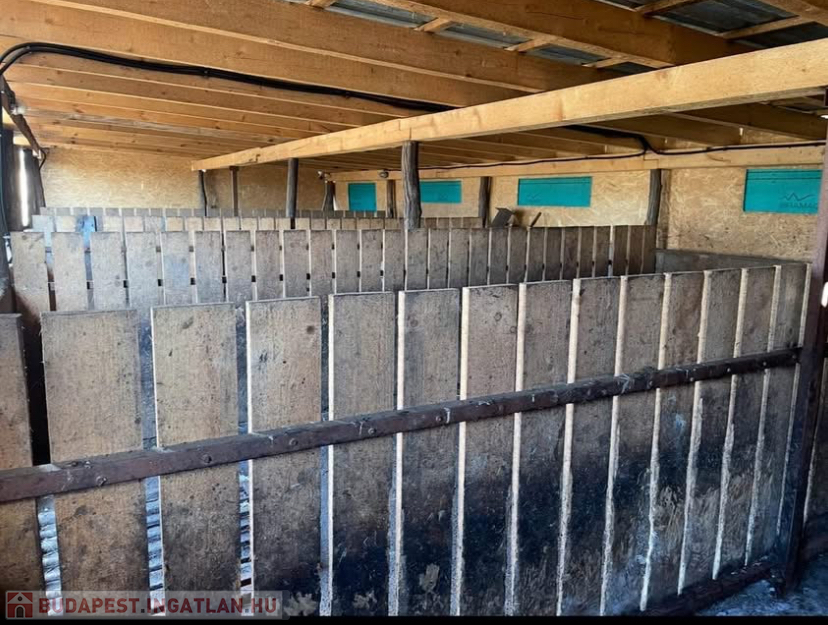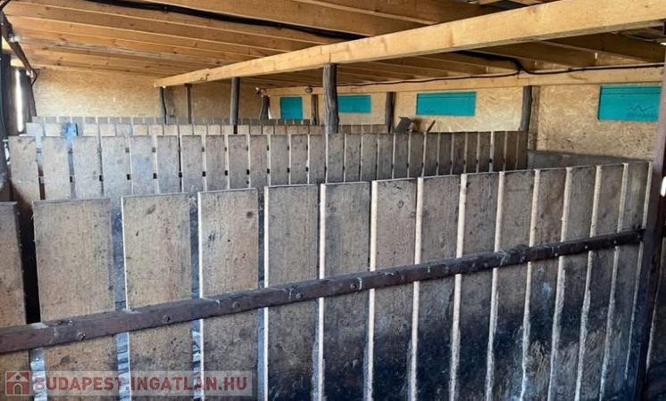 A terület 1561 m2, a főúttól 200 m-re található. A 2021-ben épült állattartásra alkalmas gazdasági épület minden higiéniai követelménynek megfele. A területen 5 db - összesen 80 m2-es állat boksz van felépítve, szükség esetén raktárnak is használható. Az ólak 15 cm-es vasbeton alappal és zsalupressz falakkal rendelkeznek.