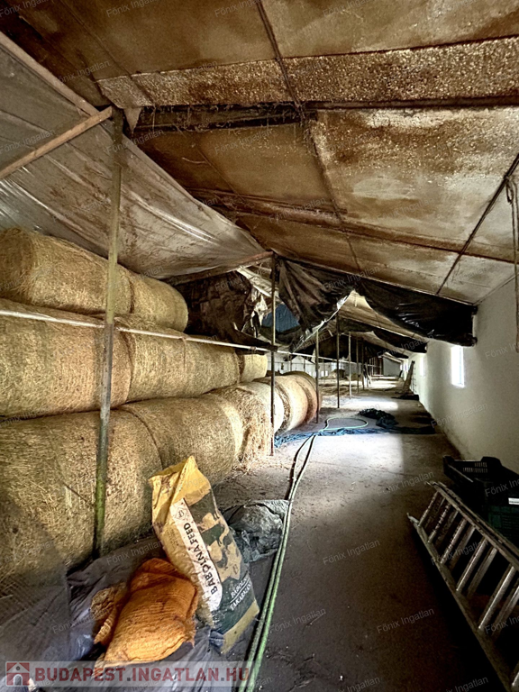 egy kb. 800 m²-es, akár álatttartásra vagy TÁROLÁSRA ALKALMAS, FŰTHETŐ, MAGAS belmagasságú, valamint egy kb. 200 m²-es tároló épület, illetve két DUPLA GARÁZS (tégla és lemez kivitelben).