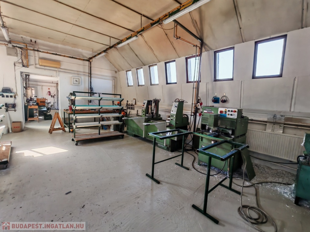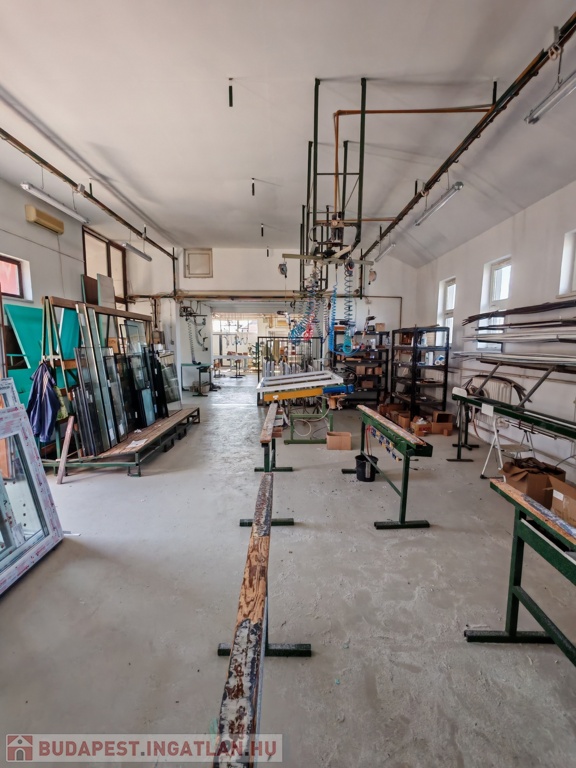 547 nm-es, a 4 részből álló műhely most jelenleg egybe van nyitva, de akár külön-külön is lezárható, tágas készáru raktárral, mosdóval, kazánházzal, ipari árammal (380W-os 3x63 Amper), kompresszor házzal, vegyes tüzelésű kazánnal, de akár gáz-cirkós fűtésrendszer is kialakítható. Találunk továbbá egy 47 nm-es raktárat, amely az új áru tárolására lett kialakítva. A műanyag nyílászáró üzem teljes összeszerelő gépekkel, komplett berendezéssel együtt is eladó, ami +15M Ft.
